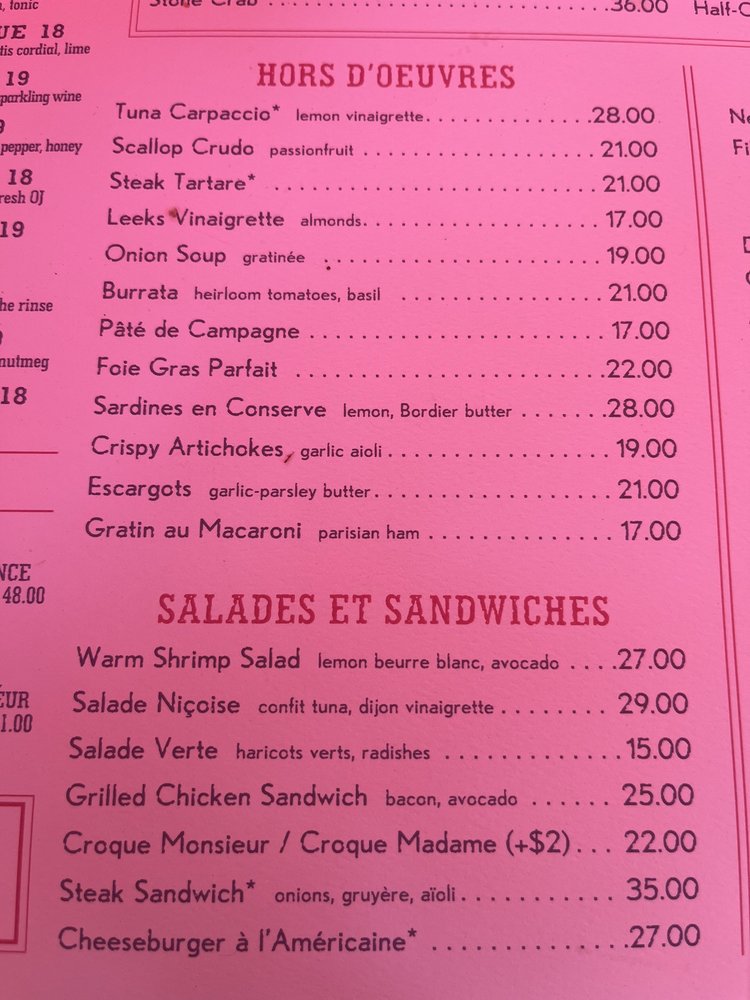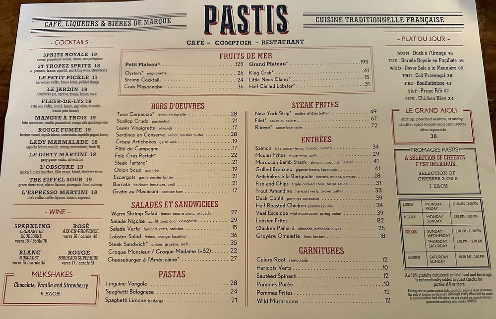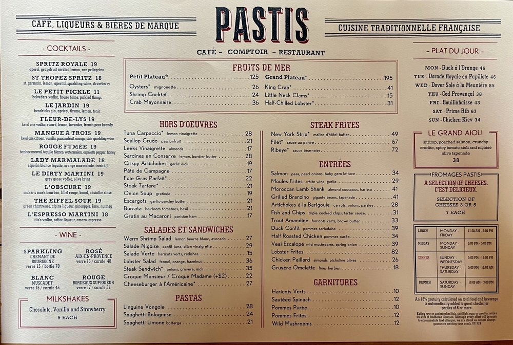 Pastis Miami Menu